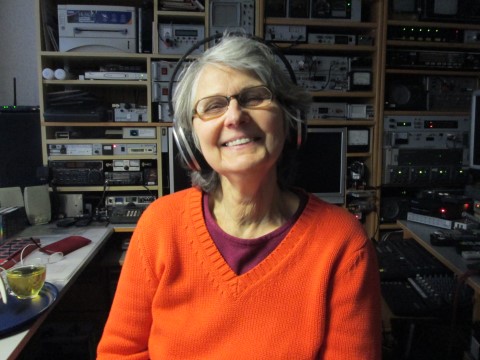 Heidi, dl2zz, ist ganz Ohr bei einer I-net Radiosendung (Bild oben) Dazu gab es bei den Nachmittagssendungen den gewohnten Tee und ein Stück Kuchen.