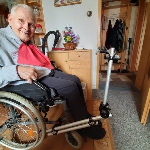 Ich mit Rollstuhl und montierter Einrichtung für mobilen Einsatz der SMARTBOX